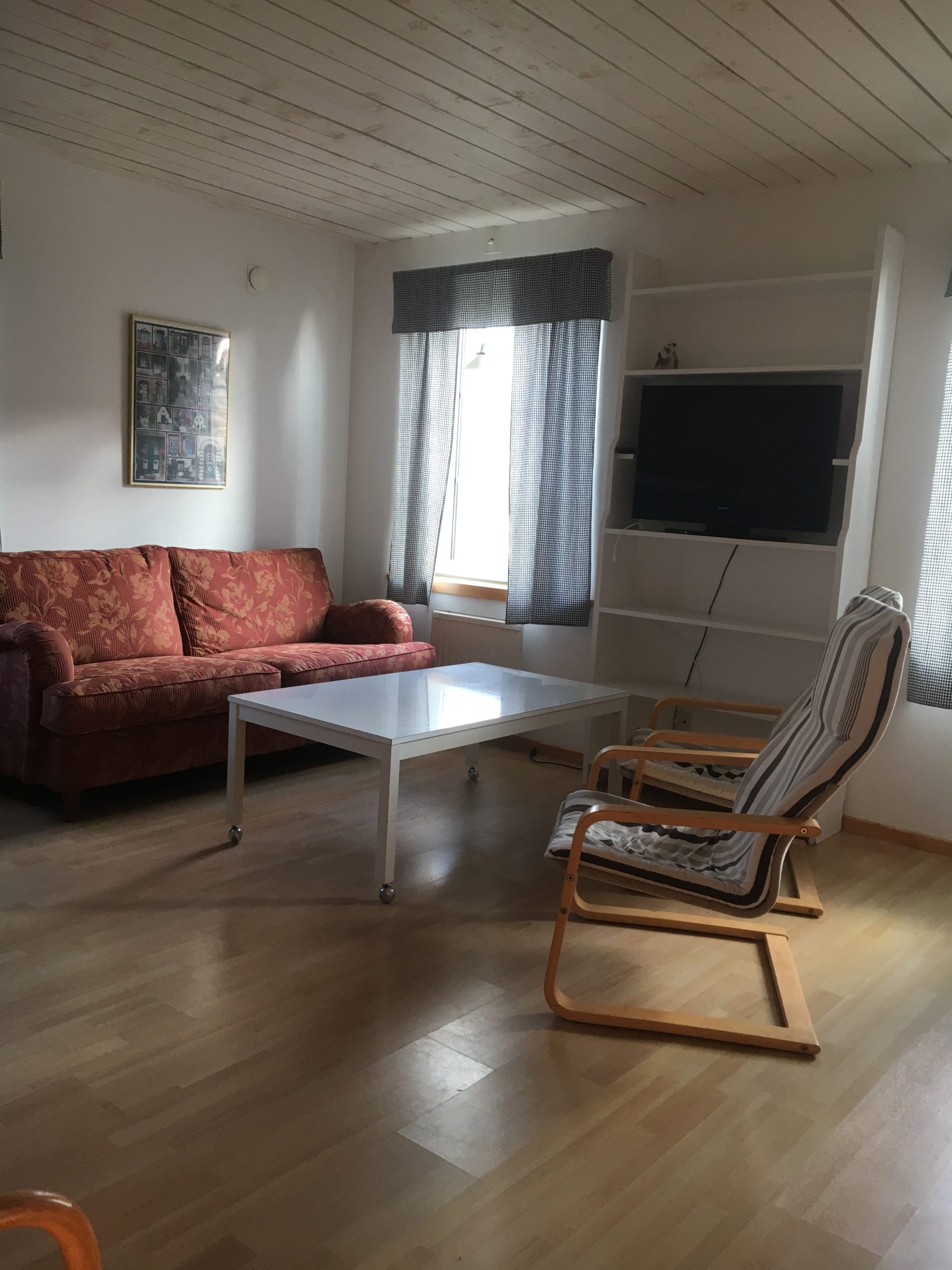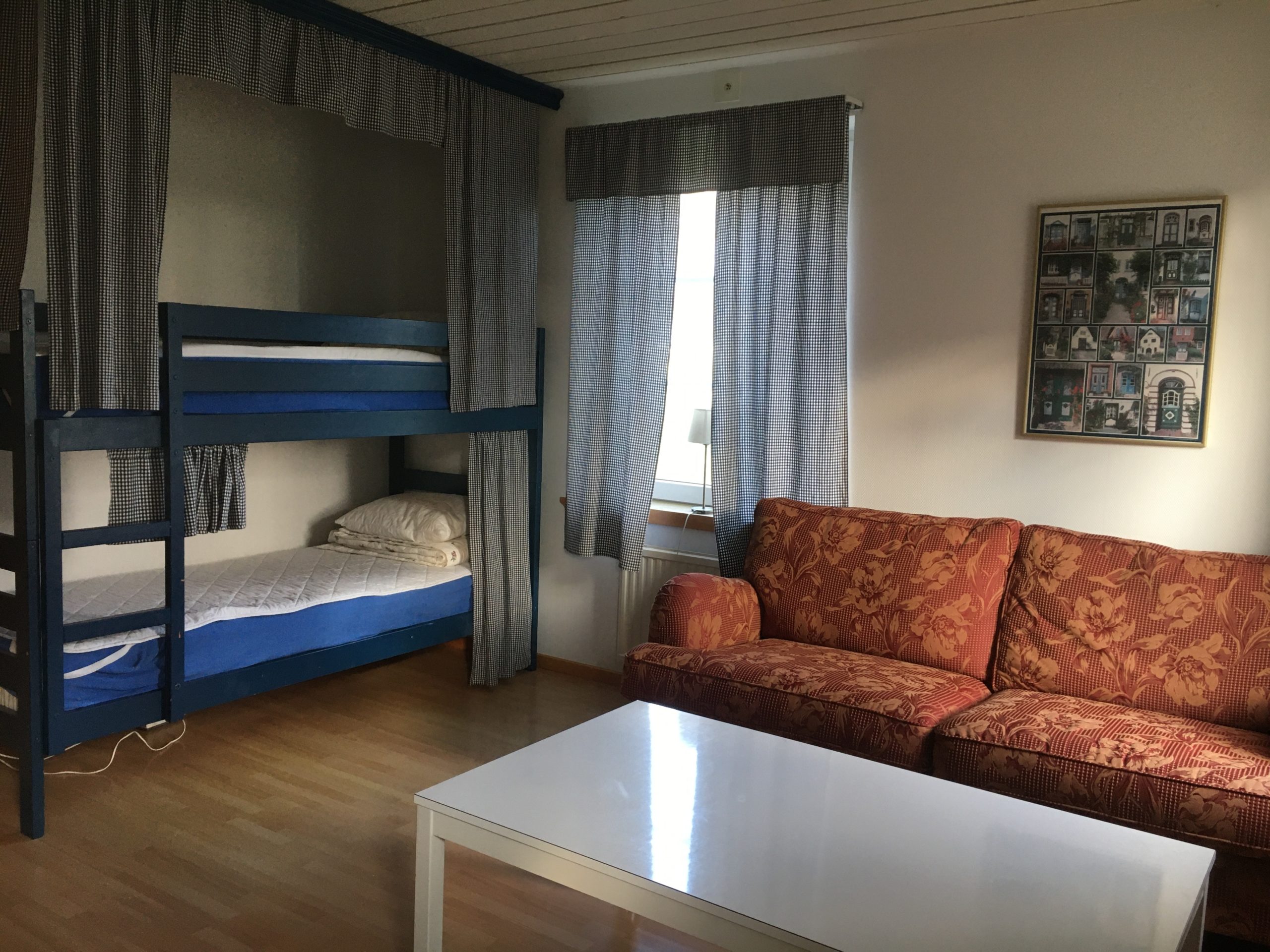 Ni bor bekvämt i gårdens karaktärsfulla Brygghus, ett stenkast från värdfamiljen. Två rum och kök på cirka 70 m². Egen trädgård med uteplats och möblemang på både fram och baksida ingår. I vardagsrummet finns våningssäng, garderob, soffa, fåtöljer, soffbord och TV. Sovrummet är fräscht, med dubbelsäng och garderob. Hall och badrum har golvvärme.
