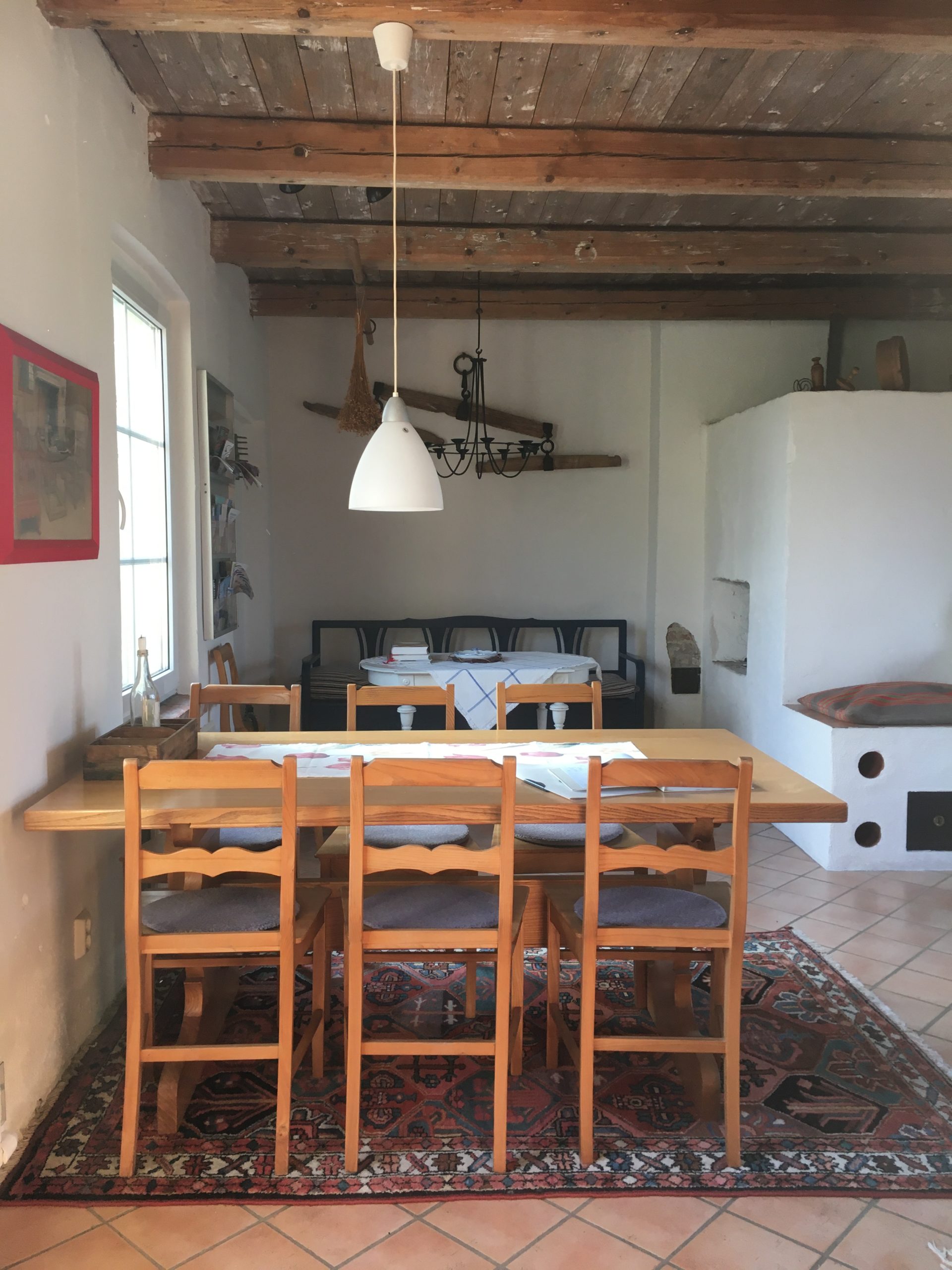 I det stora lantköket finns vedspis, bakugn, kökssoffa och köksbord – allt smakfullt i gammeldags karaktär. Till boendet hör även grill, två cyklar, solstolar och självklart finns det andra saker som gör er vistelse bekväm i Brygghuset, t ex ute leksaker till barnen, spel och annat.