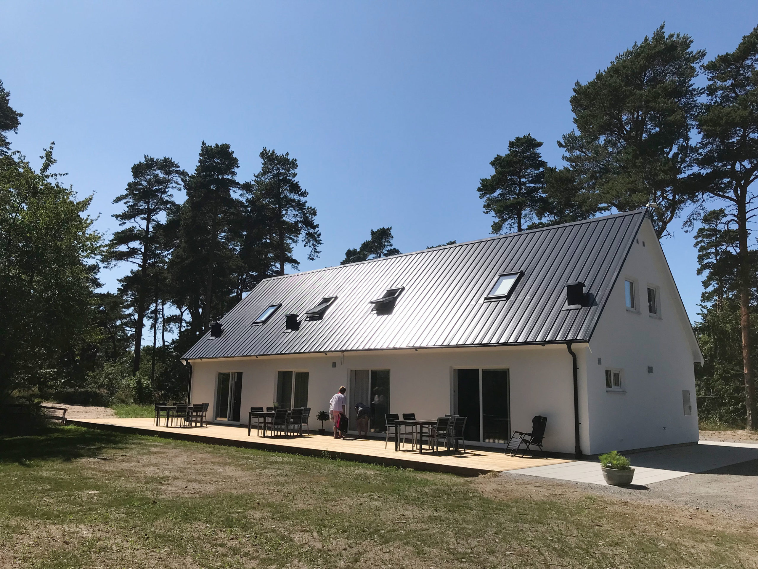 Ljuvligt och lyxigt boende med öppen planlösning på bottenvåningen, kök, badrum, och vardagsrum med 2 glasdörrar direkt ut mot trädäcket. Här vilar man ut i soffan efter en lång och härlig dag på stranden eller i skogen medan någon pysslar i köket och lagar till något gott till kvällen.