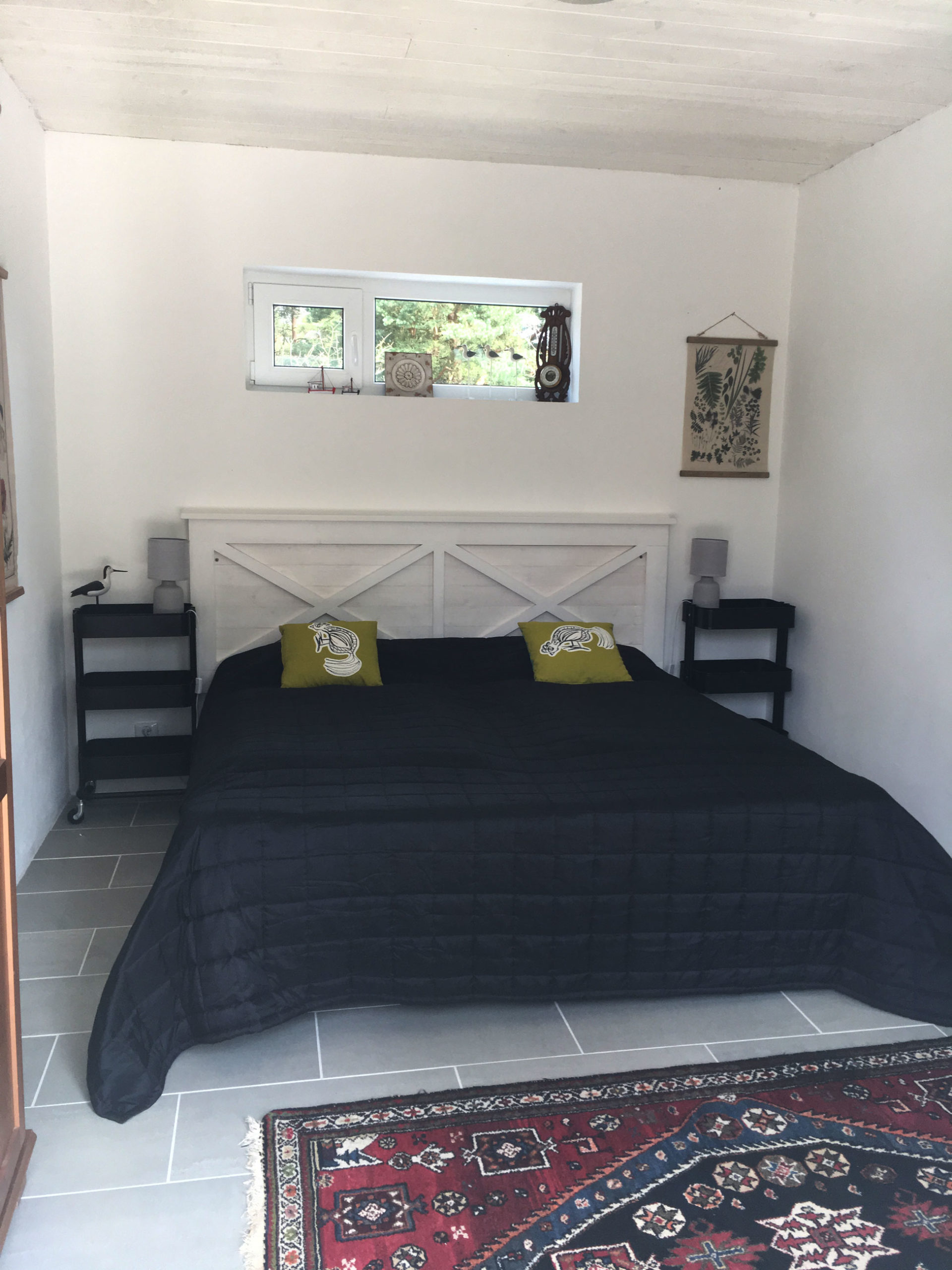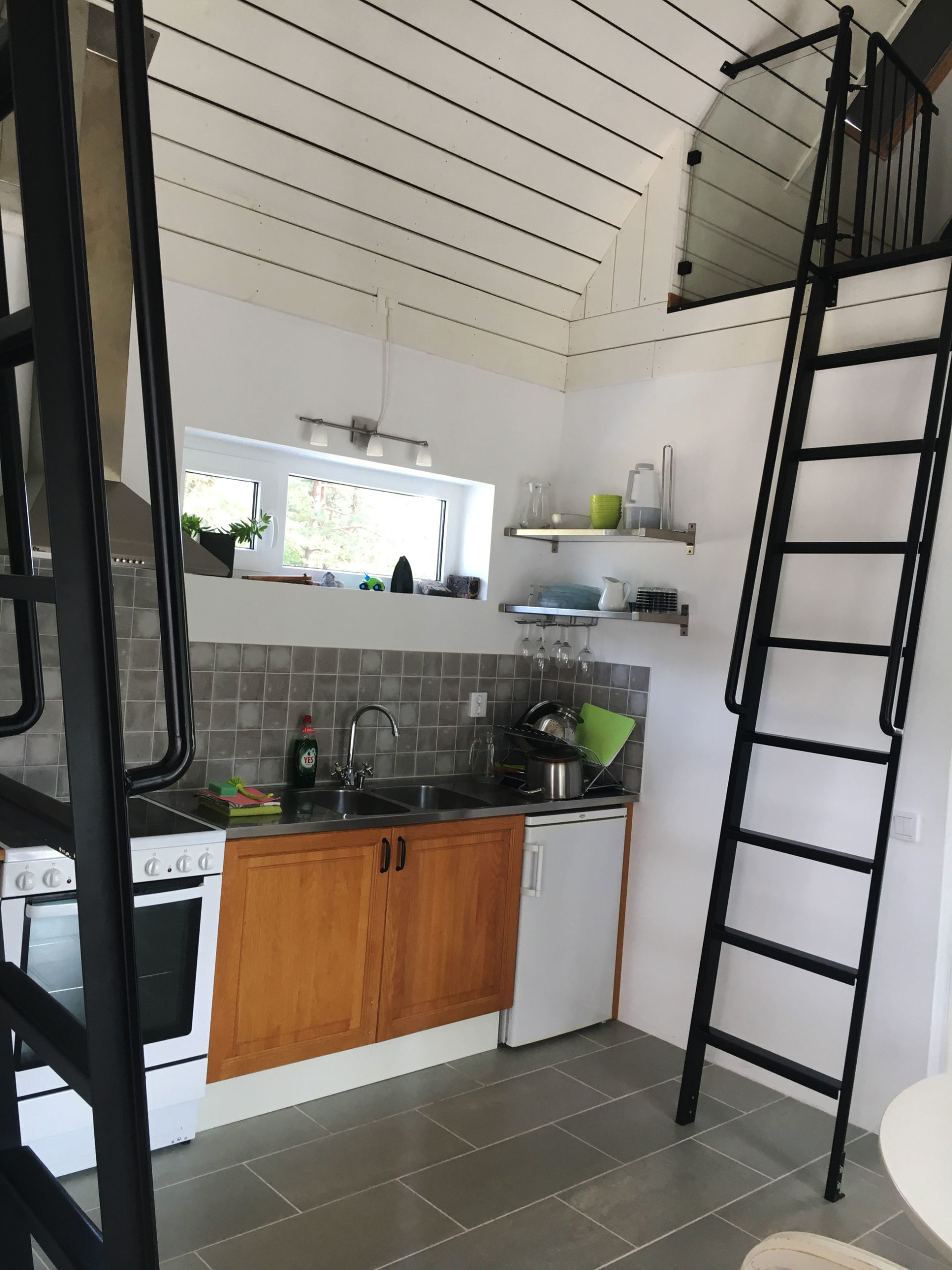Härligt annorlunda boende där du bor tillsammans med bästa kompisen eller varför inte hela familjen. Nedre plan har öppen planlösning med kök, badrum och en dubbelsäng.
