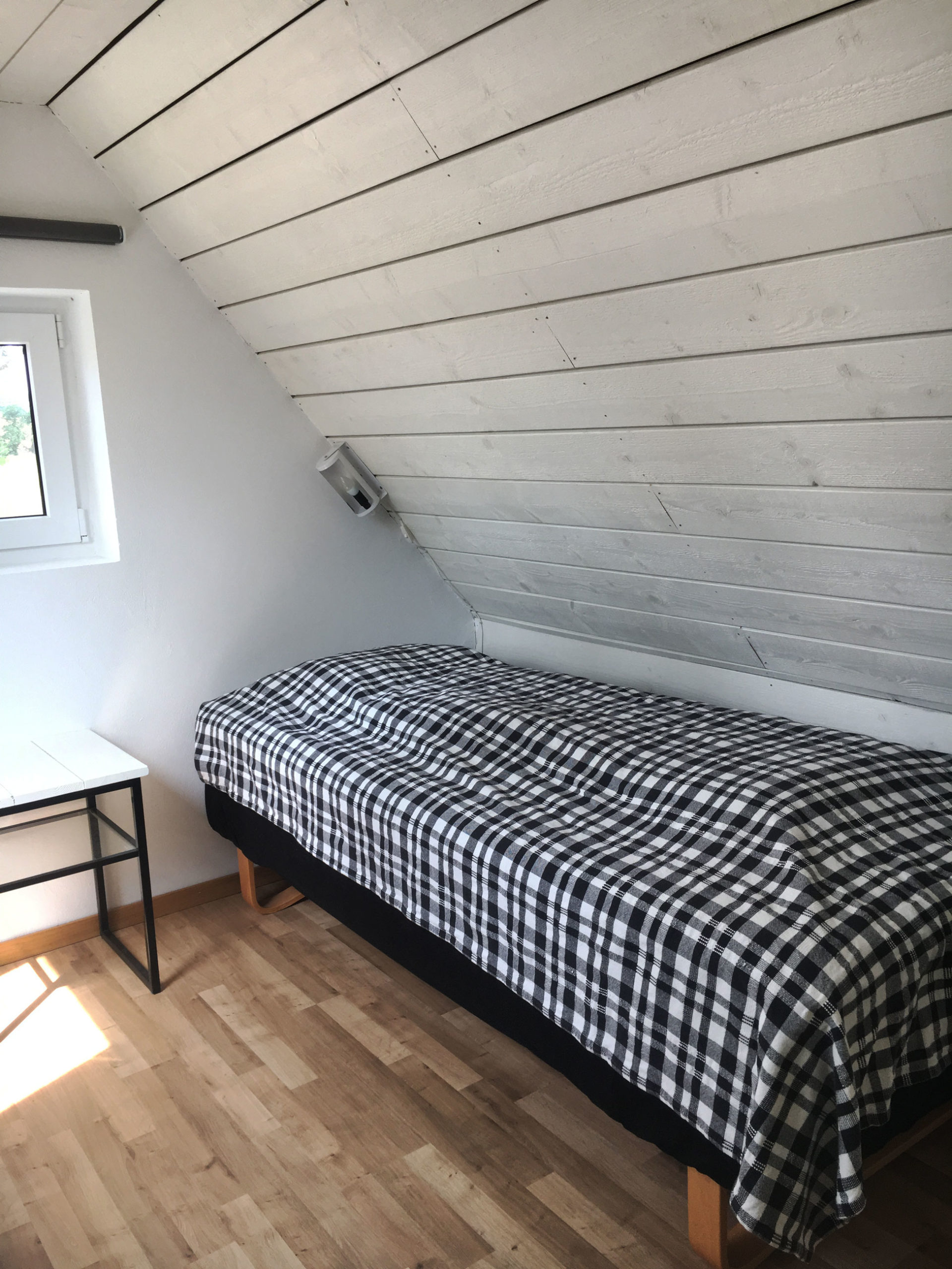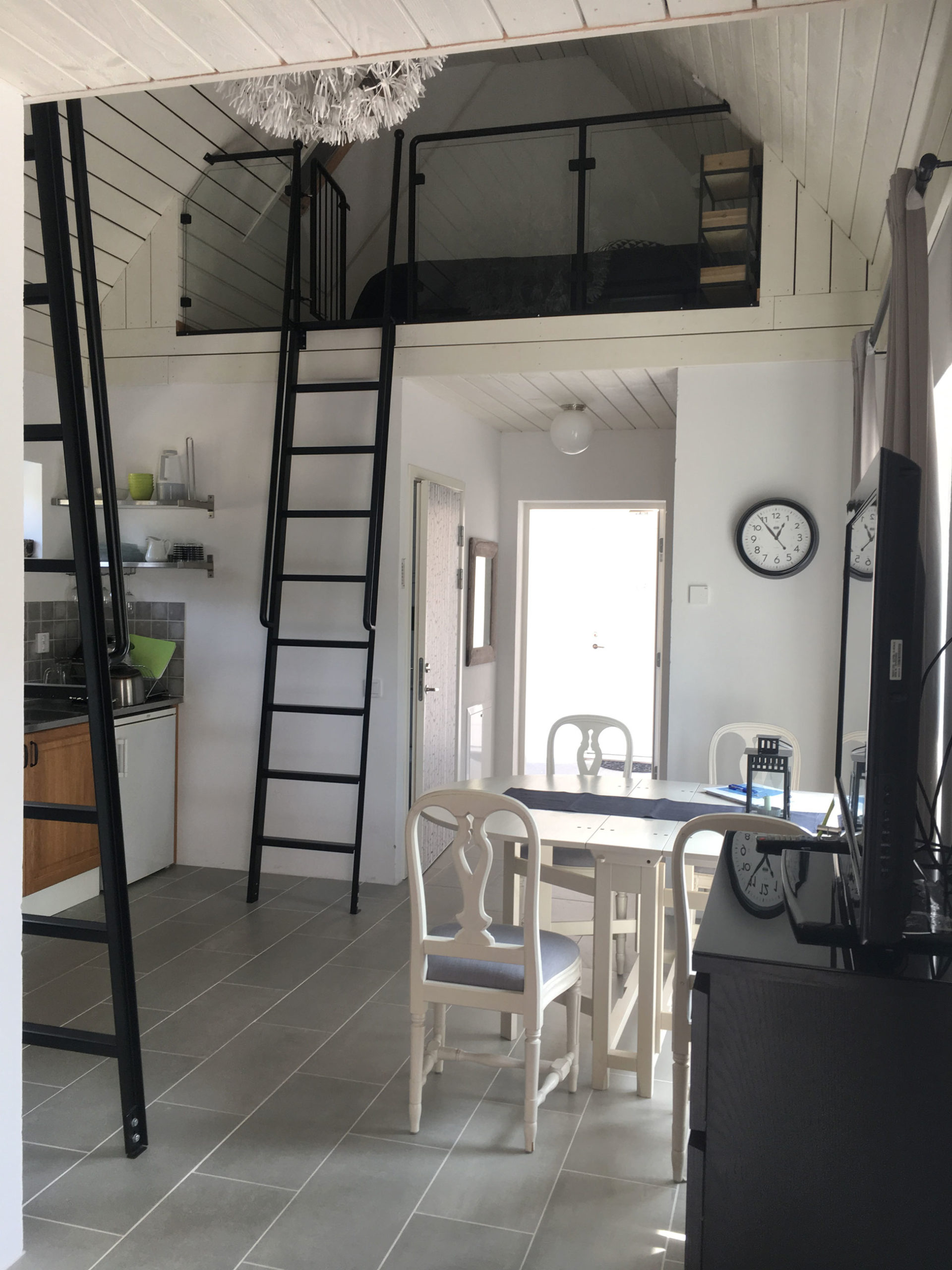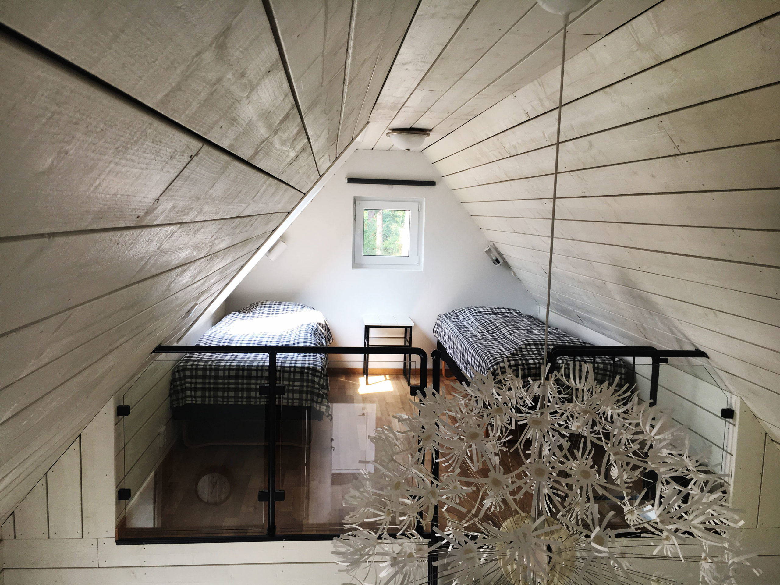 De lite äldre barnen bor bekvämt uppe på de båda sovloften. Här uppe finner du 2 st 90 sängar och en 120 säng.